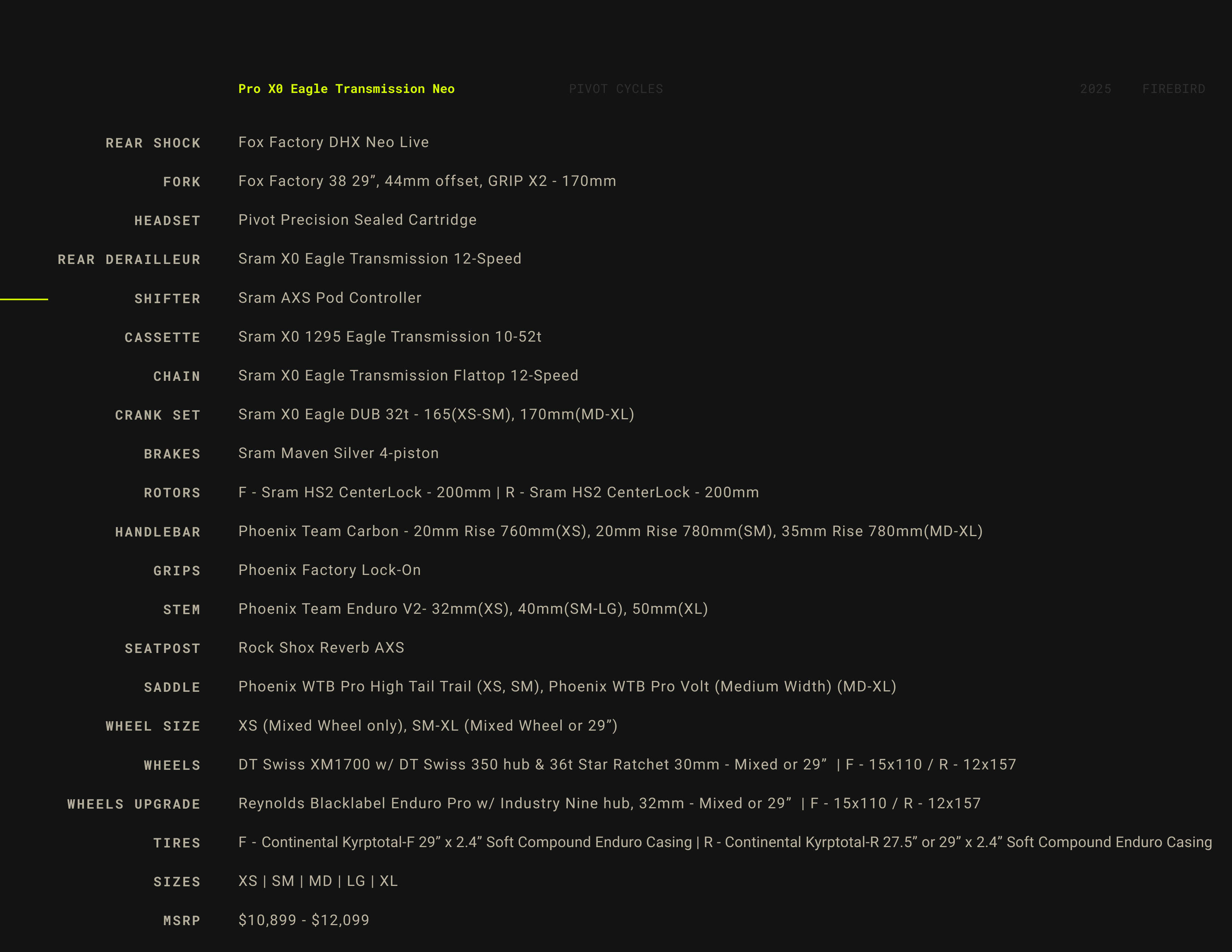 e planted feel, the latest Firebird is built to push limits and chase podiums. With nearly bottomless suspension, it’s so planted it may as well grow roots. Roots that can fly. Look, we don’t get it, either but you will when you ride it.